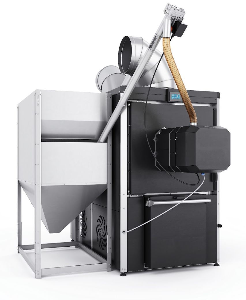 100 kW (võimus on moduleeriv 20-100 kW). Komplektis on katel, isepuhastuv pelletipõleti, tuhakast+tuhatigu, etteandetigu, pelletimahuti 1130 l, ruumiandur ja netimoodul. 2022a mudel, soodushind, kuna tehasegarantii on läbi, seadet ei ole kasutatud. Eests laos.